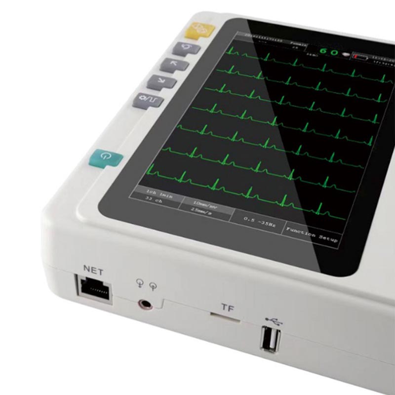 1. HTSY® elektrokardiografen er udstyret med en 7-tommer high-definition farveberøringsskærm. Skærmen har en høj opløsning og fremragende farvegengivelse. Betjeningsgrænsefladen er enkel og overskuelig med et fornuftigt layout. Alle funktionsknapper er tydeligt genkendelige. Betjeningen er særdeles intuitiv og nem at mestre, selv for medicinsk personale, der er nye i udstyret. Samtidig er skærmresponsen ekstremt følsom. Klik og glidende har ingen forsinkelse eller forsinkelse. Når medicinsk personale ser elektrokardiogrammets bølgeform, er detaljerne tydeligt synlige og bølgeformen er jævn og kontinuerlig. Der er ingen grund til at justere parametre gentagne gange, hvilket i høj grad forbedrer operativ bekvemmelighed.