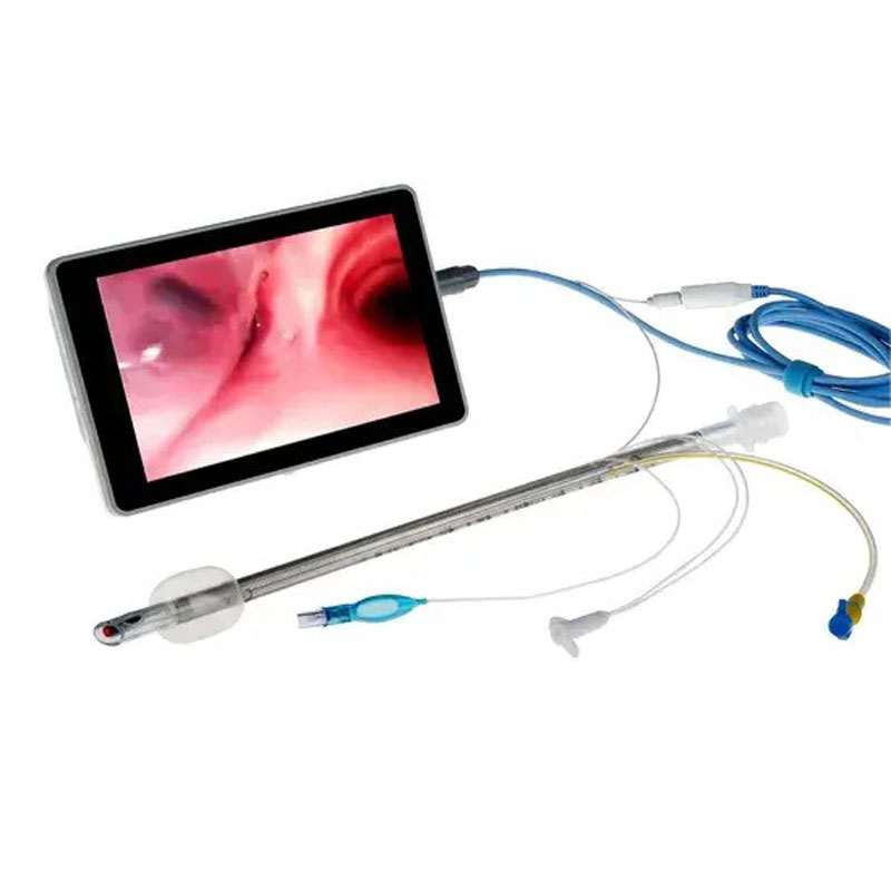 Visuelt forstærket endotracheal tube med sugeport tilføjer oplyst stilet. Kameraet giver klar luftvejsvisning under indsættelse og reducerer risiko for fejlplacering.